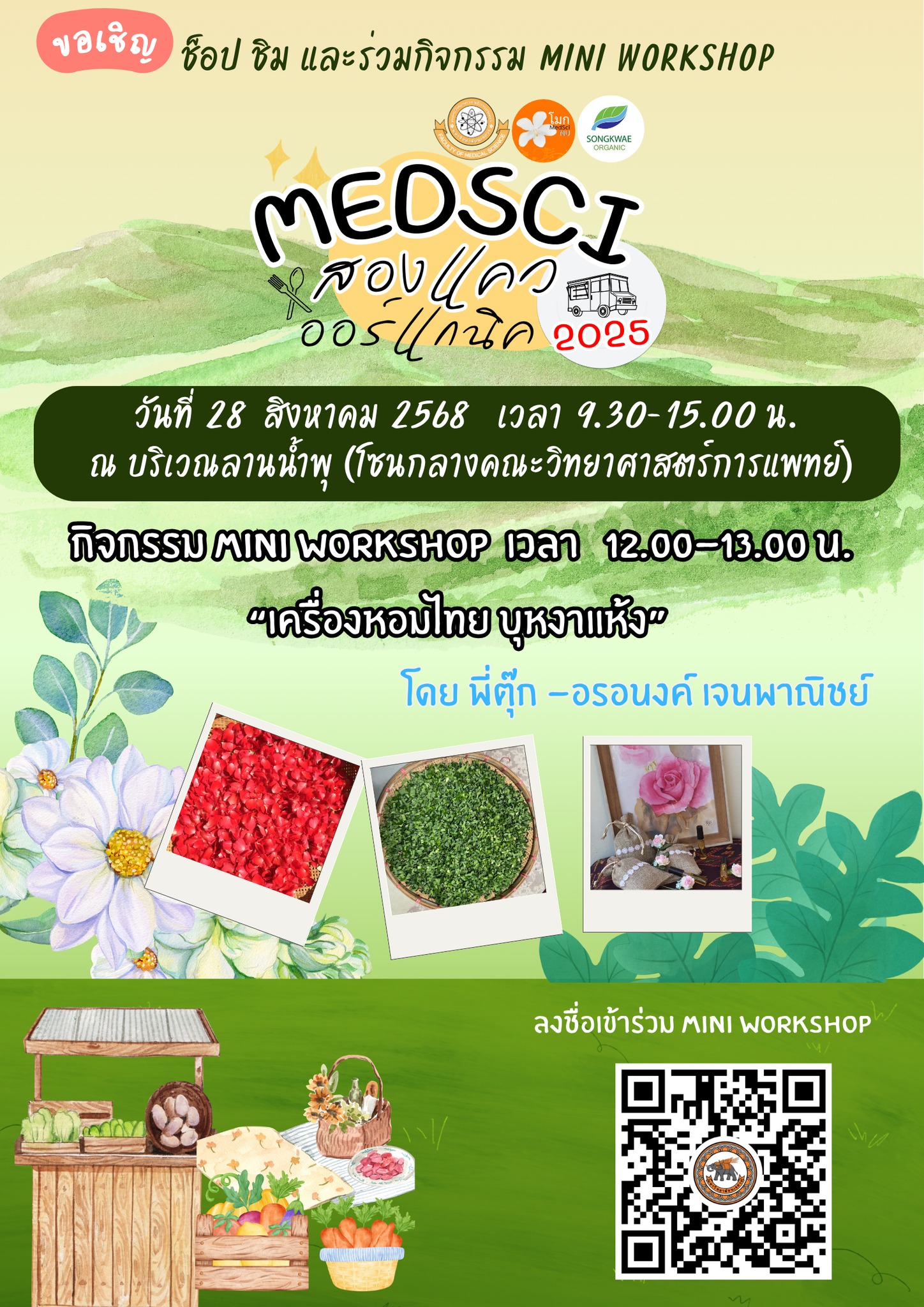 สามารถเข้าถึงผลิตภัณฑ์เพื่อสุขภาพ อาหาร และร่วมสนุกกับ mini workshop ได้อย่างสะดวก ปลอดภัย ท่ามกลางบรรยากาศดี ๆ ณ ลานน้ำพุ โซนกลาง อาคารเรียนคณะวิทยาศาสตร์การแพทย์![]()