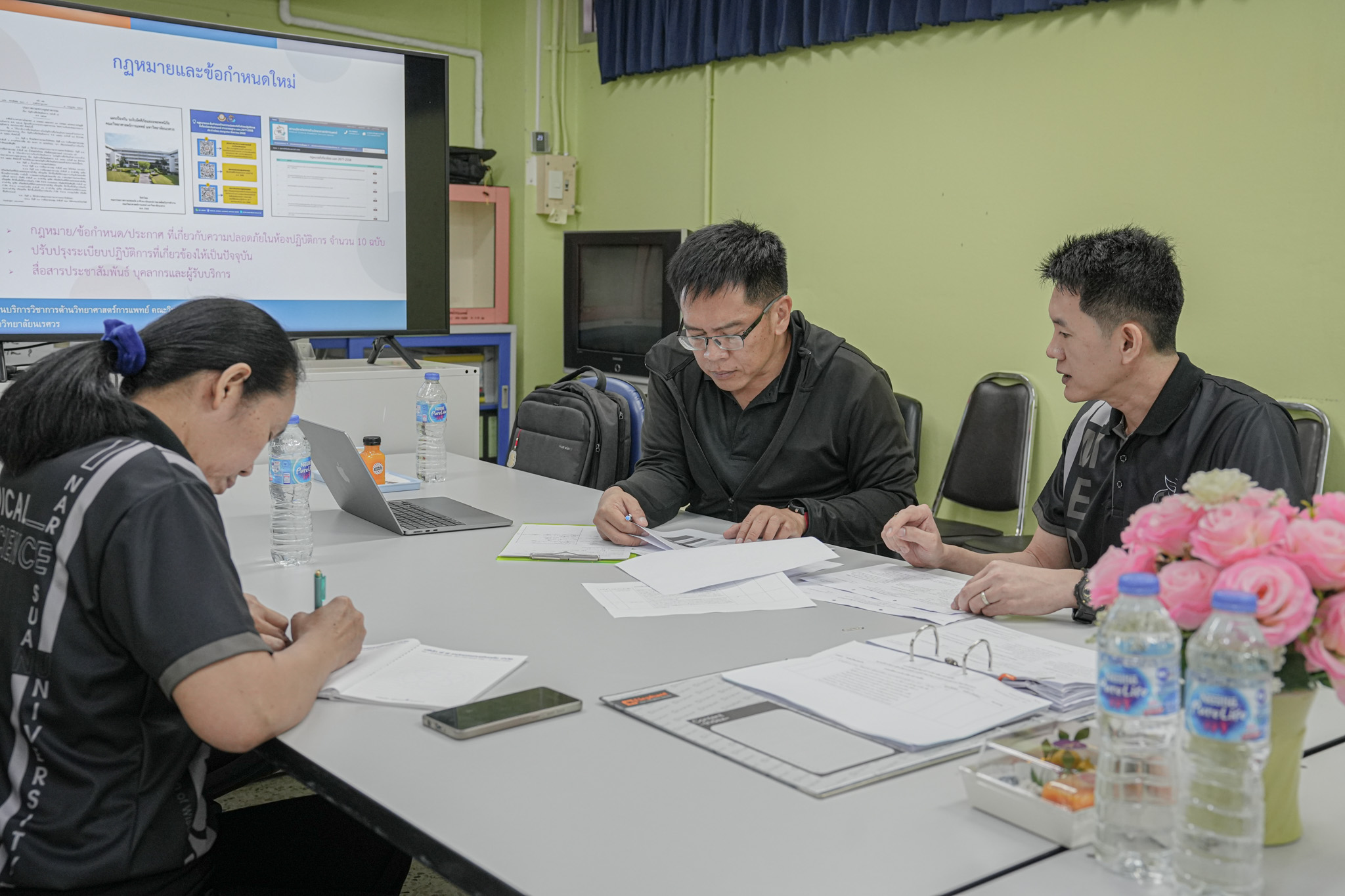 วันศุกร์ที่ 21 พฤศจิกายน 2568 รองศาสตราจารย์ ดร.สุขกิจ ยะโสธรศรีกุล (คณบดีคณะวิทยาศาสตร์การแพทย์) ผู้ช่วยศาสตราจารย์ ดร.ภาคภูมิ ทรัพย์สุนทร (รองคณบดีฝ่ายวิจัยและนวัตกรรม รักษาการผู้อำนวยการสถานบริการวิชาการด้านวิทยาศาสตร์การแพทย์) พร้อมด้วยบุคลากรสถานบริการวิชาการด้านวิทยาศาสตร์การแพทย์ ร่วมนำเสนอผลการดำเนินงานห้องปฏิบัติการ MD 513 ในรอบ 1 ปี ตามขอบข่ายที่ได้รับการรับรองมาตรฐาน มอก.2677 และข้อมูลการดำเนินงานตามระบบการจัดการด้านความปลอดภัยของห้องปฏิบัติการที่เกี่ยวกับสารเคมี (มอก.2677-2558) ณ สถานบริการวิชาการด้านวิทยาศาสตร์การแพทย์ คณะวิทยาศาสตร์การแพทย์ มหาวิทยาลัยนเรศวร